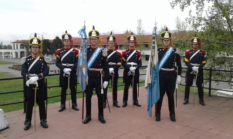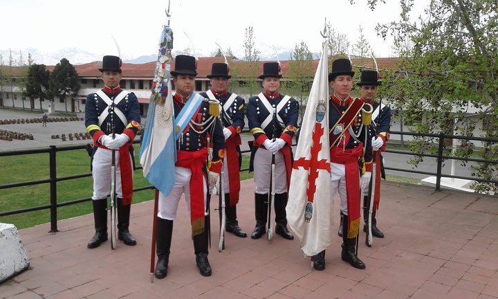 Con fecha 17 de enero de 1985, el Regimiento de Infantería 1 Patricios, la unidad militar con continuidad histórica más antigua de Hispanoamérica, ha logrado tras más de diez años de gestiones, obtener autorización para que a la izquierda de la bandera nacional forme, al frente de la unidad, el emblema que constituyó su primer pabellón de Guerra en 1807.
